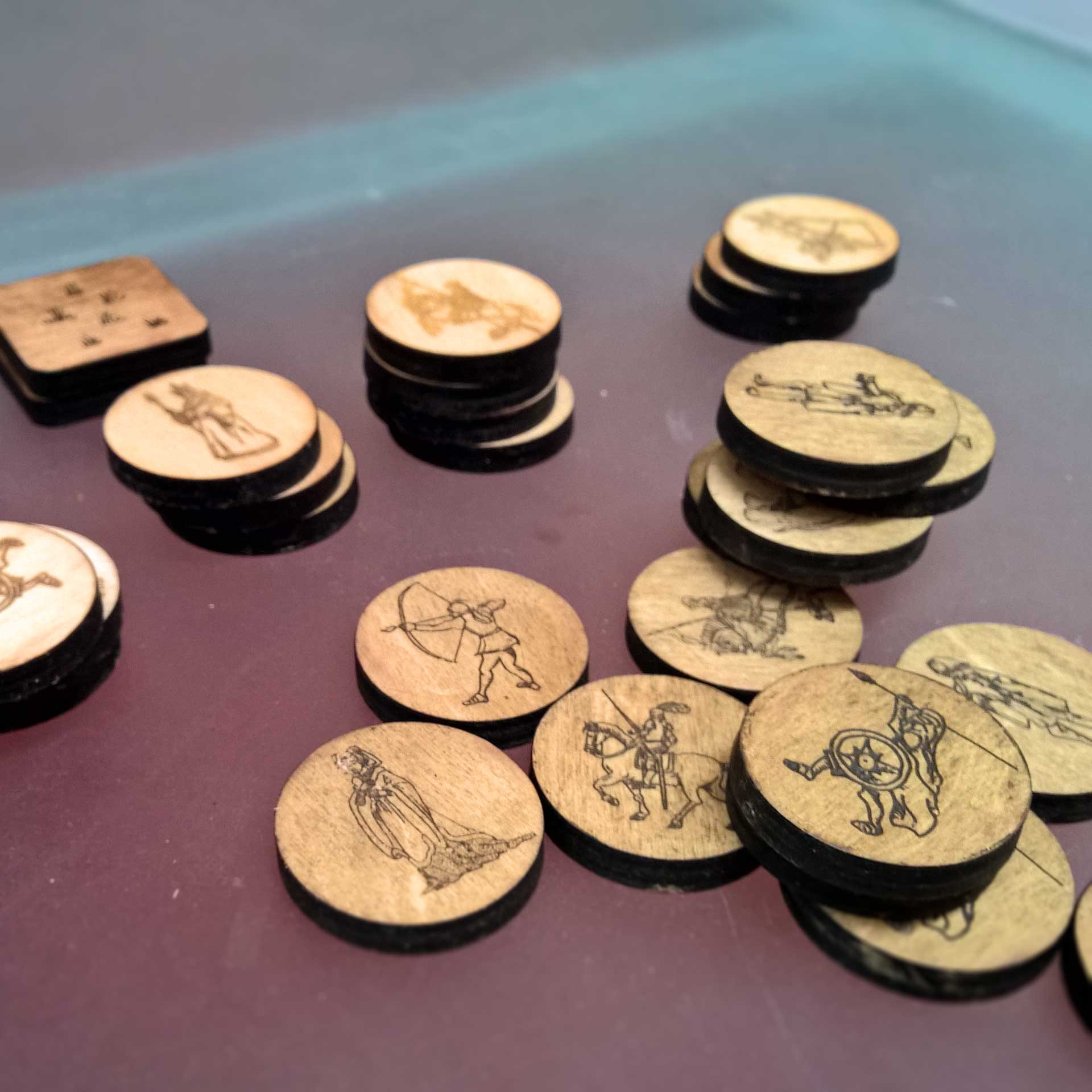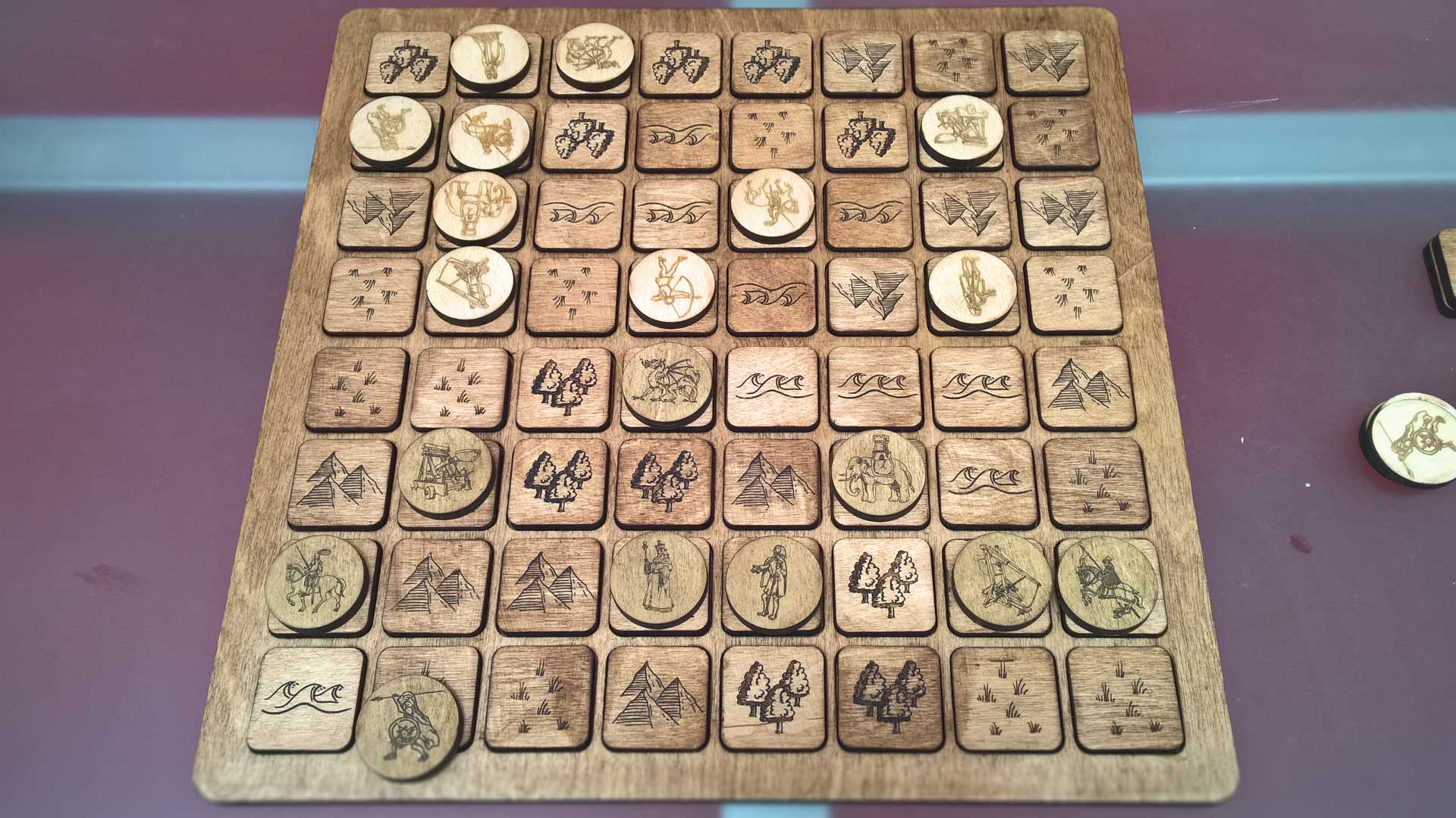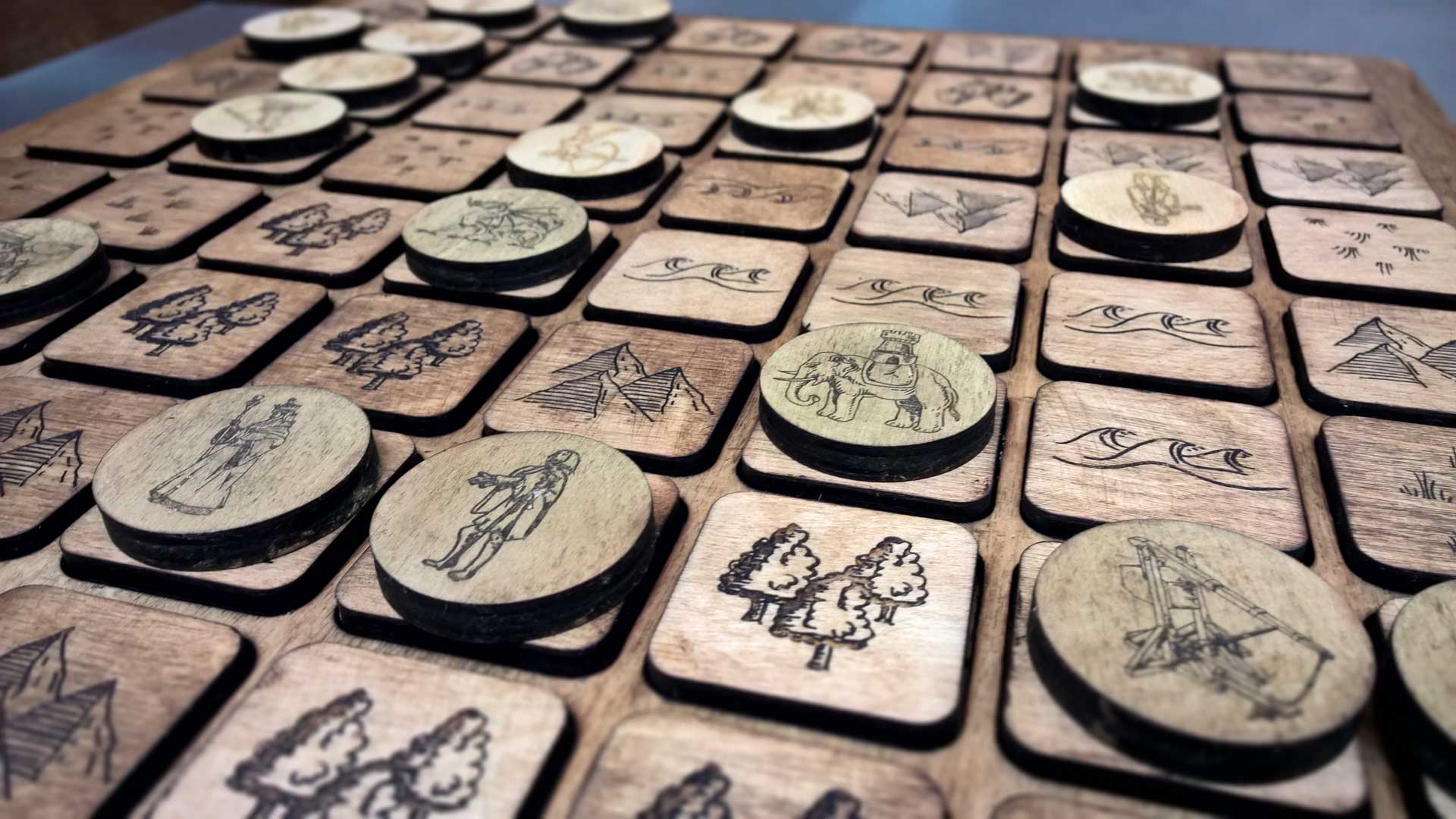 Challenge accepted. This board game has been developed from fan-made rules and the few mentions it gets in the Song of Ice and Fire books. Each symbol has been hand-drawn then laser engraved into each piece. The board and all the pieces have then been hand-finished and waxed for protection.